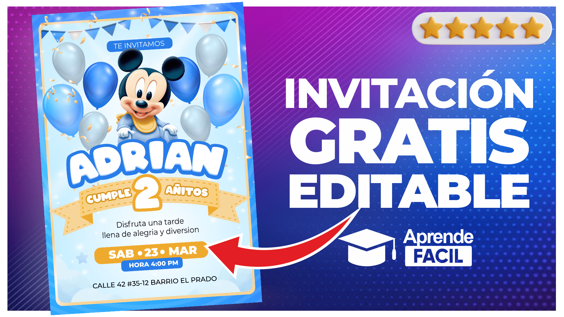 hola que tal chicos en este video les enseño a hacer invitación de mickey mouse bebe en el celular, espero que les guste y les sirva.