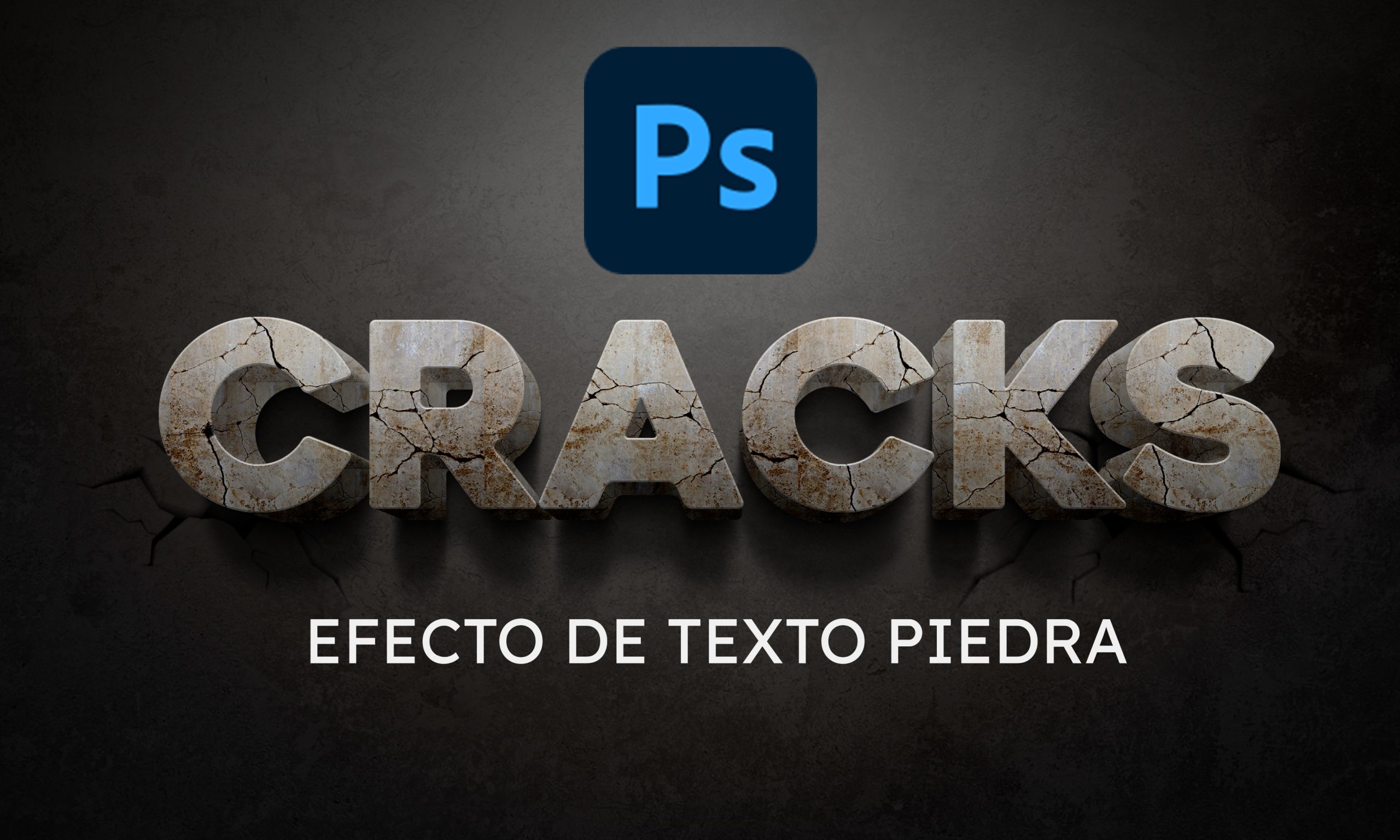 Video explicativo de como aplicar el efecto de texto piedra con grietas en photoshop a en tu diseño