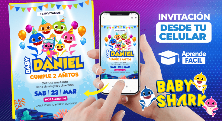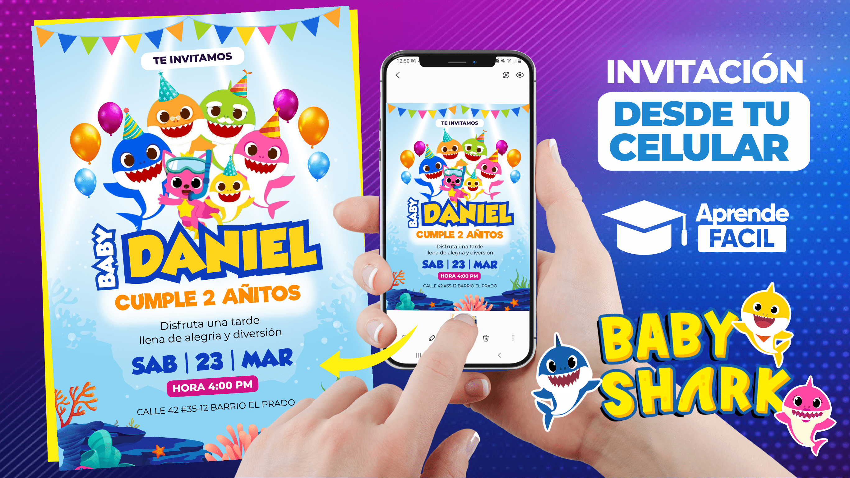hola que tal chicos en este video les enseño a hacer invitación de cumpleaños baby shark el celular, espero que les guste y les sirva.