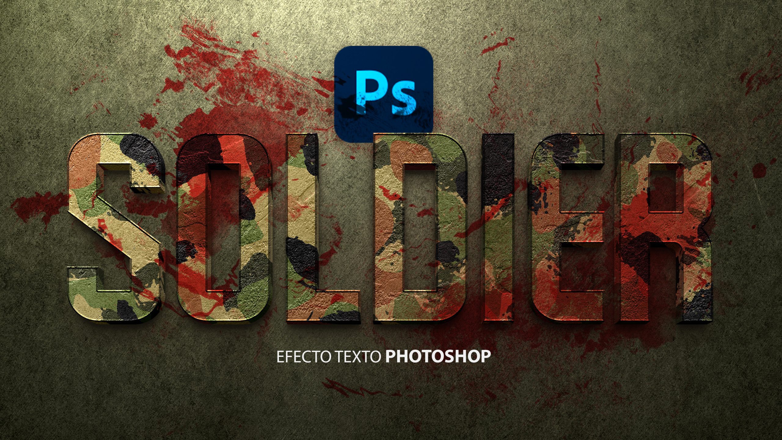 Explanatory video on how to apply the effect of editable military letters in Photoshop to your design