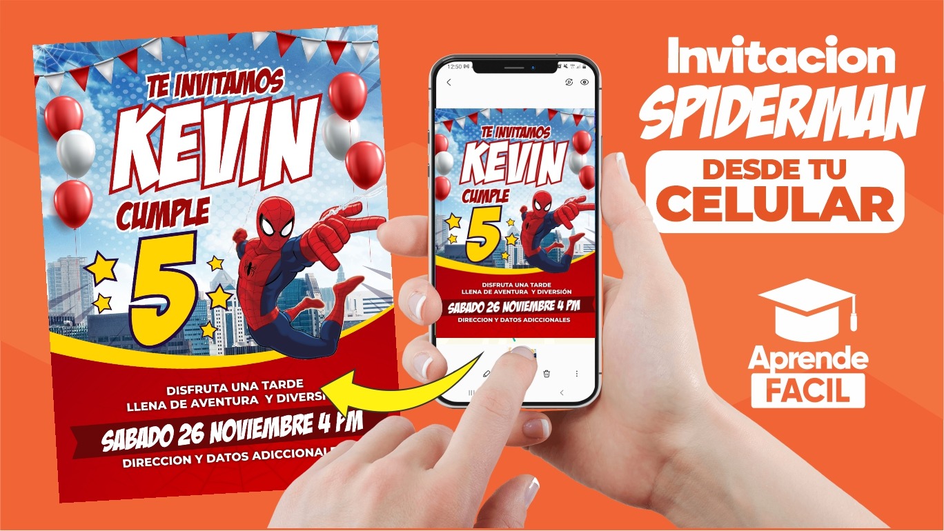 hola que tal chicos en este video les enseño a hacer invitación de cumpleaños de spiderman en el celular, espero que les guste y les sirva.