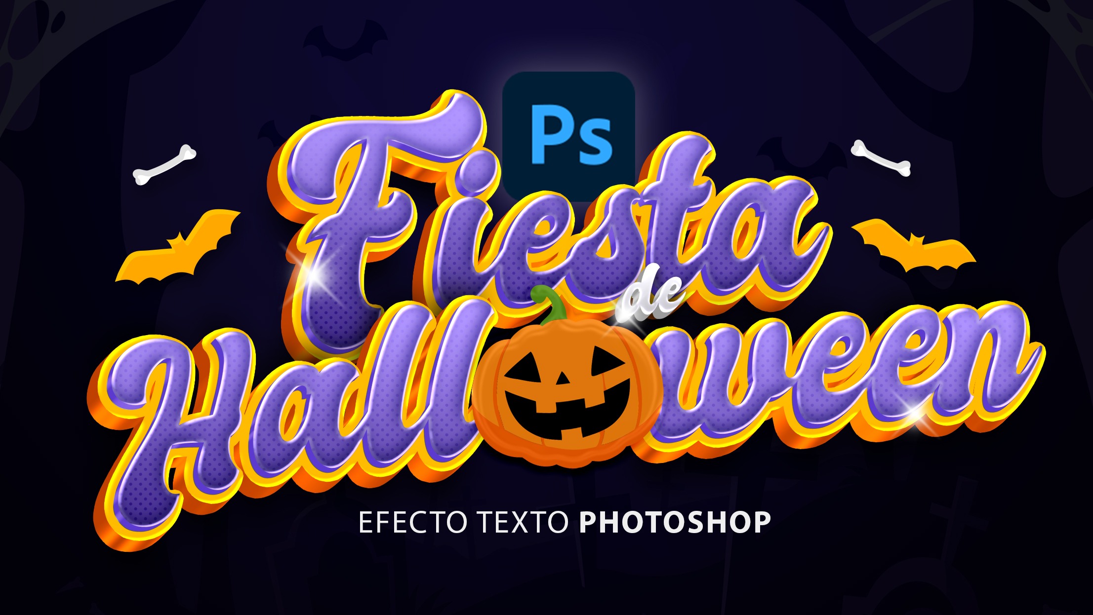 Video explicativo de como hacer letras de halloween 3D editable en photoshop editables a tu diseño